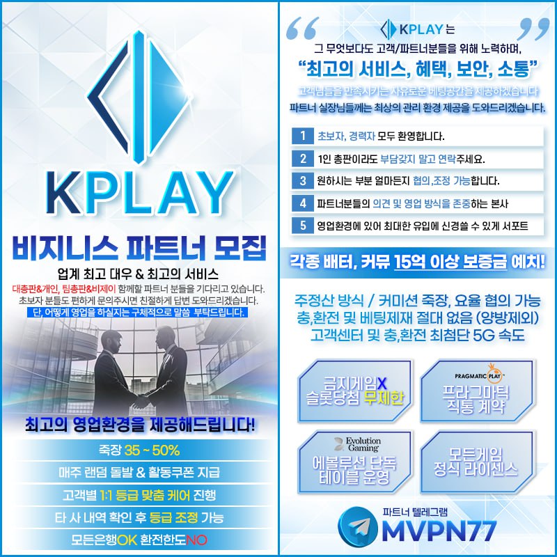 ☀️KPLAY카지노【본사】 보증 50억 실예치 보증업체└개인총판 ,팀단위총판 파트너┘ 사장님들 최고우대 모집합니다 ☀️