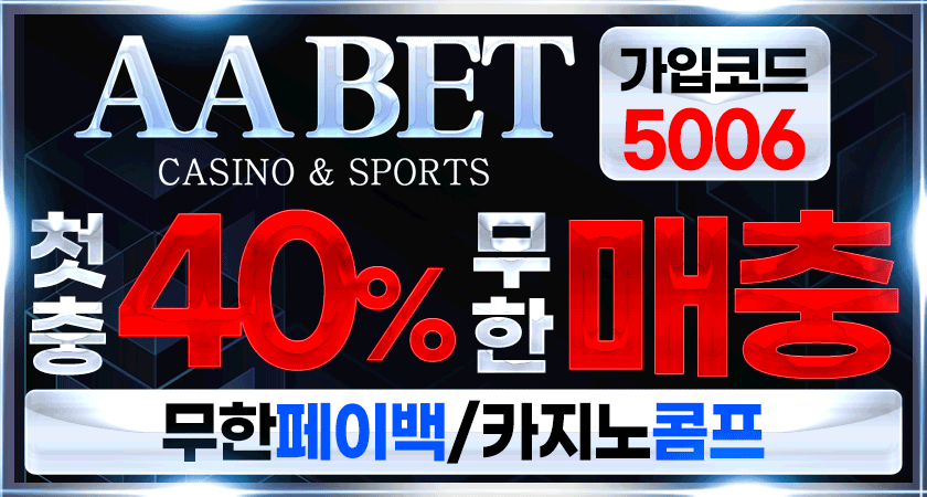 사이트 이름 AA벳 링크 https://xn--hi5ba37jba.com 코드 5006 신규 혜택 신규첫충 40%